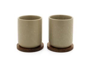 A set of ceramic tea mugs, perfectly matched with the Umea tea set. The set comes complete with two acacia coasters, allowing you to safely place the mugs on the table. Available in loam grey, white and black.