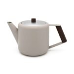 The Duet® Design Boston teapot’s contemporary look results from the combination of matte beige stainless steel, a glossy lid, and a wood-look handle and knob. It is a real eye-catcher on the kitchen table! Duet® Design Boston is made of high-quality stainless steel and features a double insulating wall, which helps preserve tea’s heat and flavour for three quarters of an hour to an hour. The uniquely designed spout allows for pouring without spilling. It has a 1.1 litre capacity, which is equivalent to about five cups of tea.