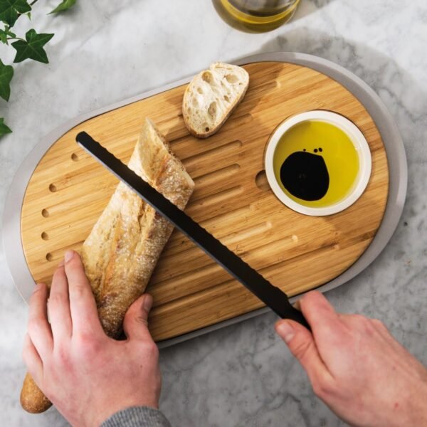 This 3-piece set is perfect for serving tapas, antipasti, cold meats, cheeses, bread, .. which can all be cut directly on the bamboo board. The small bowl is just the right size for butter, herb-infused oils, sauces or dips. Need more serving space? Simply lift de bamboo board from the tray to double the space for your tasty delights!
