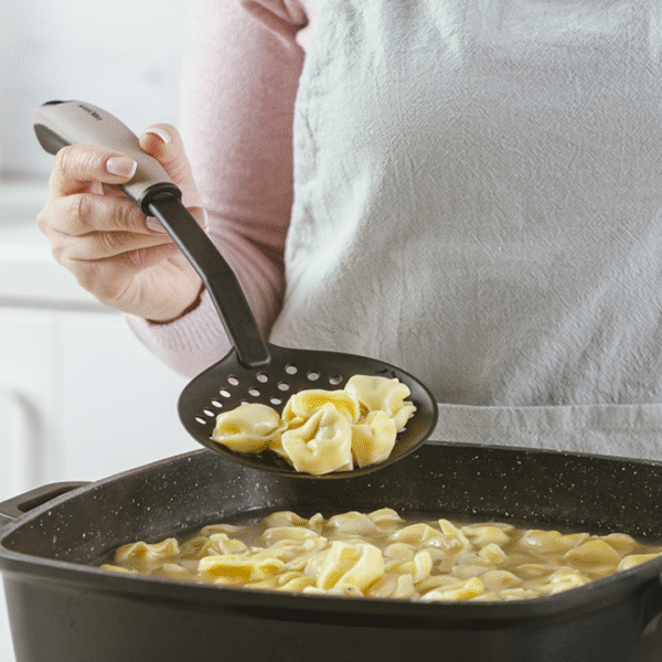 It hasΒ an ergonomic, non-slip soft touchΒ handle, for comfortable and safe handling. The practical hole at the edge of the handle allows you to hang it.