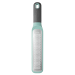 Zesting or grating spices, garlic, citrus fruits, hard cheeses or chocolate is a piece of cake with this convenient zester. With its sharp stainless steel blade it tackles a variety of ingredients with great ease and thanks to the ergonomic soft-grip handle you’re sure to always keep a safe and comfortable grip on the grater. On top of that, you can count on the non-slip base to protect your countertop or plate or use the zester’s integrated bowl notches to easily zest over a mixing bowl. Once you’re done and you’ve given the rasp grater a quick hand wash, you can safely store it with the fitted protective cover so that your hands are protected from cuts and the blade stays sharp.